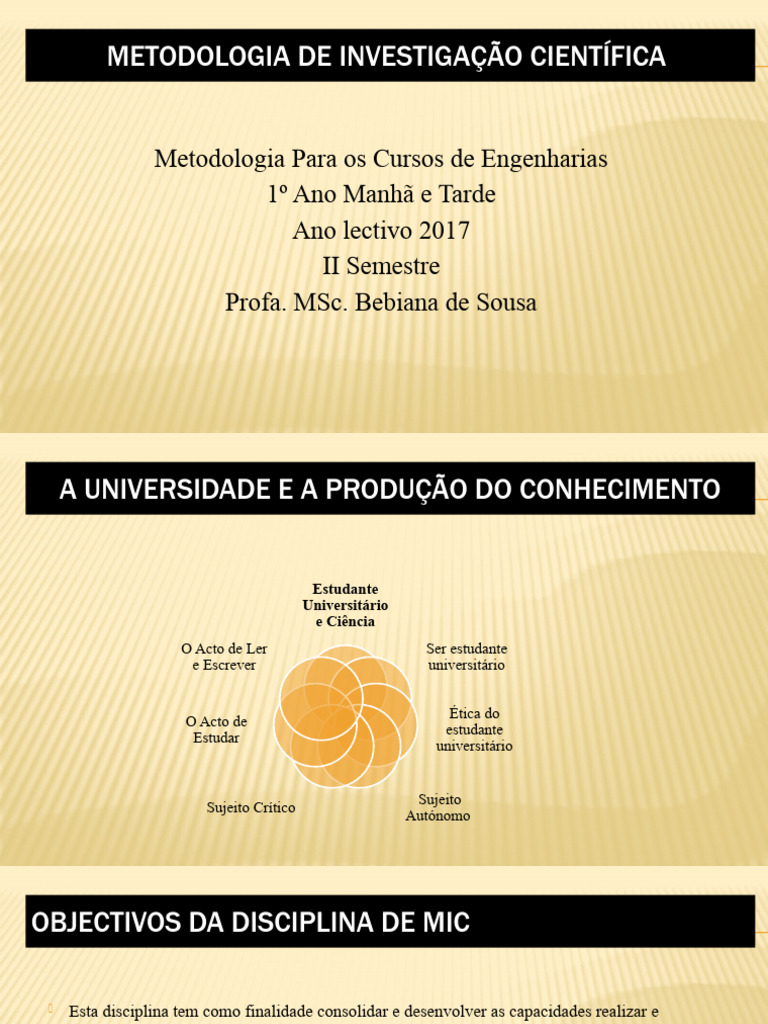 OBJECTIVOS DA DISCIPLINA DE MIC