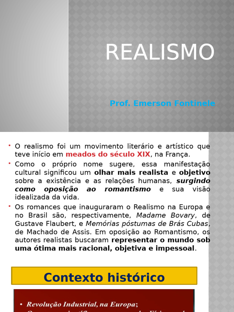 É nesse contexto socio-político-científico que surgem o Realismo,