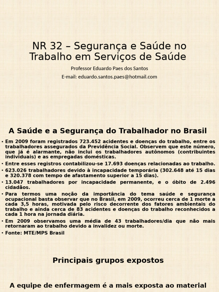 NR 32- Segurança e Saúde do Trabalho em Serviços de Saúde