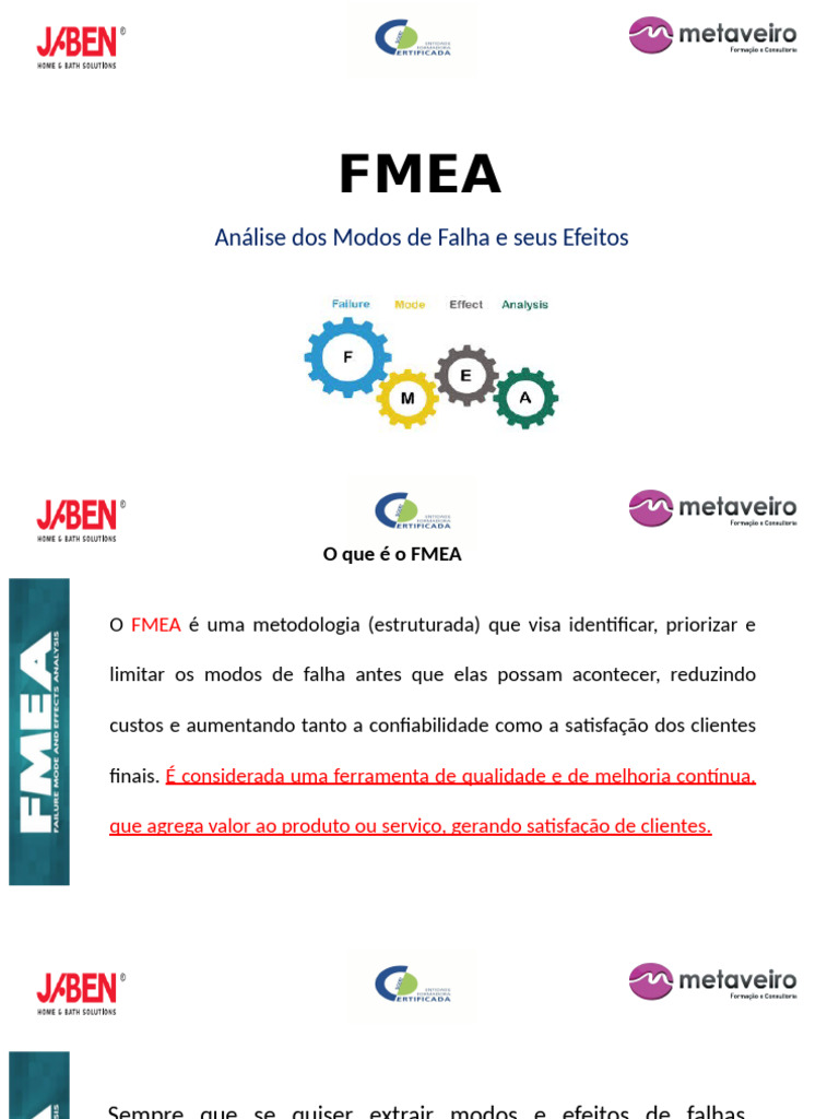 O FMEA é uma metodologia (estruturada) que visa identificar, priorizar e