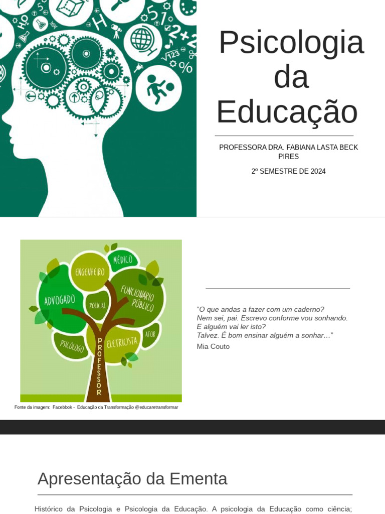 Psicologia da Educação como Ciência – Professora Andréia Forgiarini Cechin (UFSM)