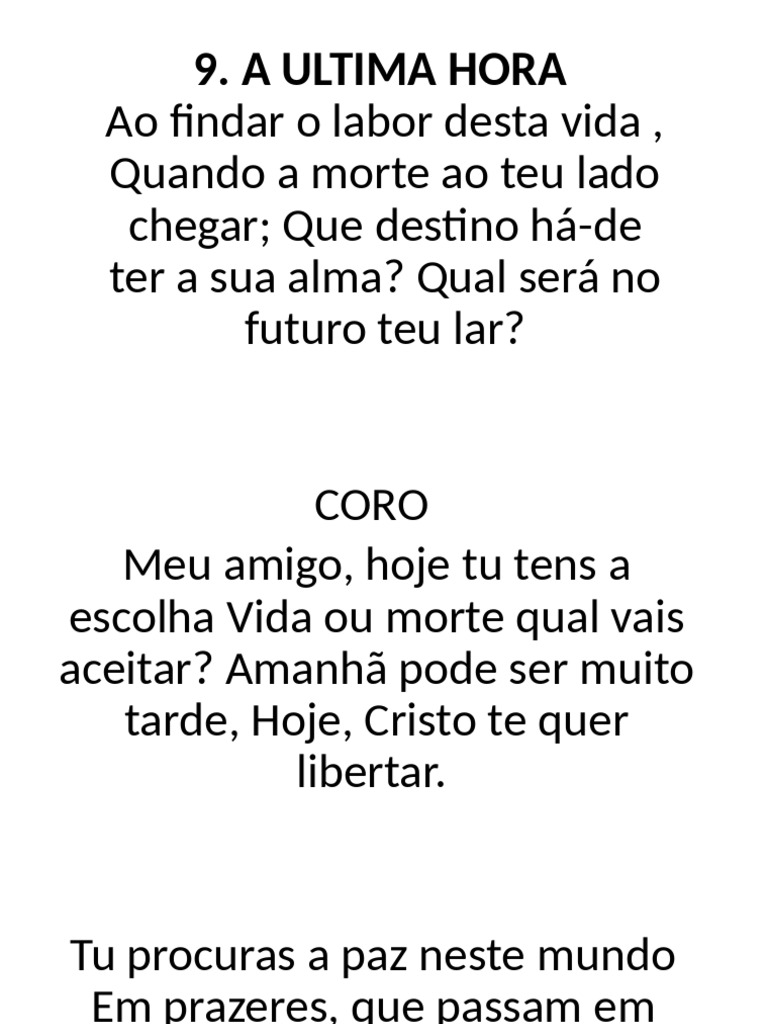 vão; Mas, a última hora da vida,