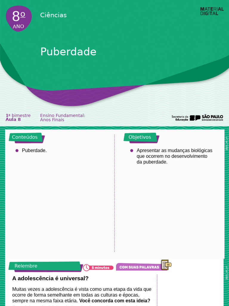 de estarmos falando, em aula, sobre características gerais na puberdade e em como elas