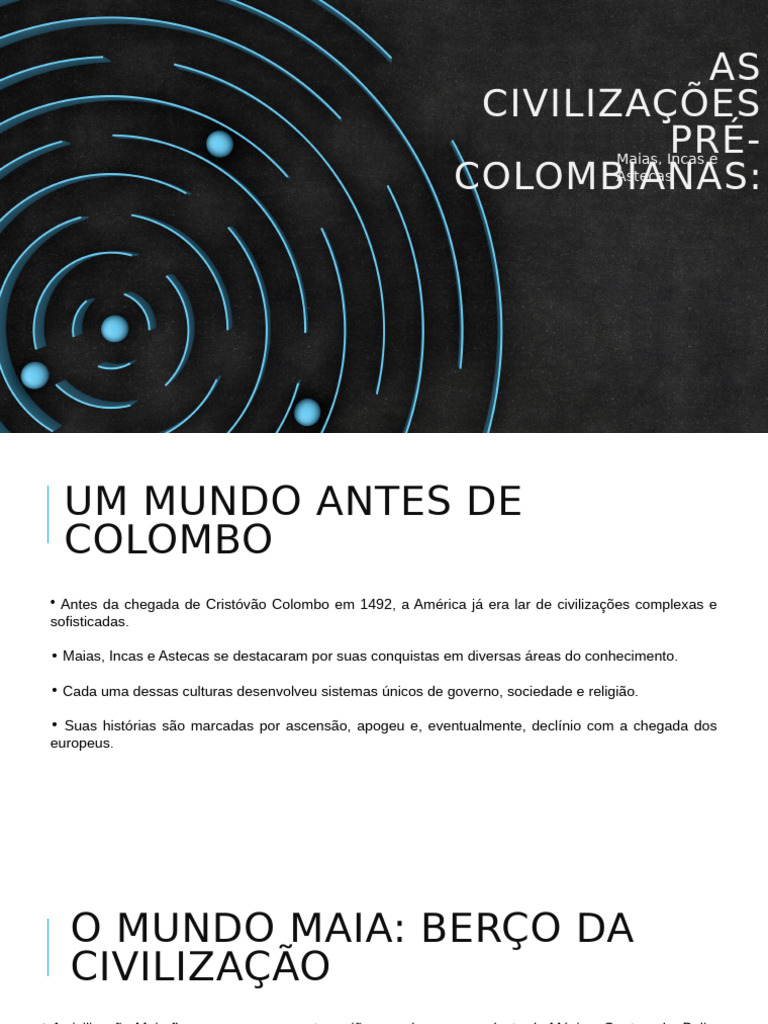 • Maias, Incas e Astecas deixaram legados culturais, científicos e arquitetônicos impressionantes.