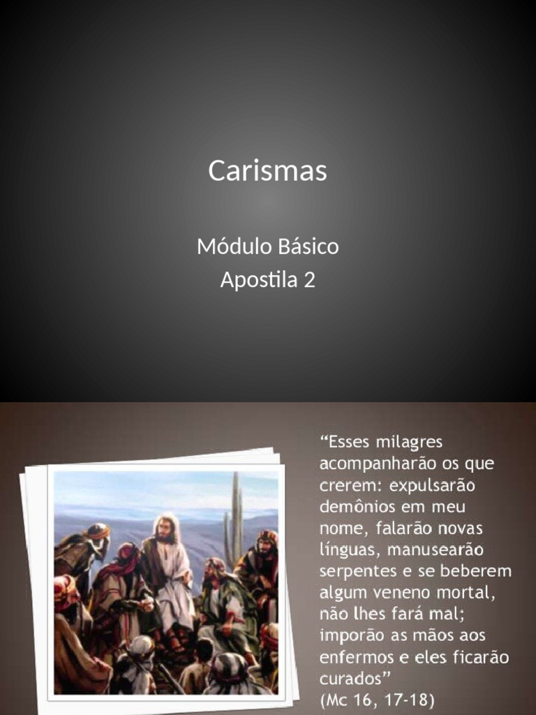 • Os carismas são dons, graças, presentes, dados pelo espírito santo,