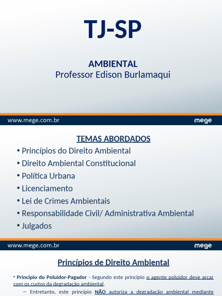 – Entretanto, este princípio NÃO autoriza a degradação ambiental mediante