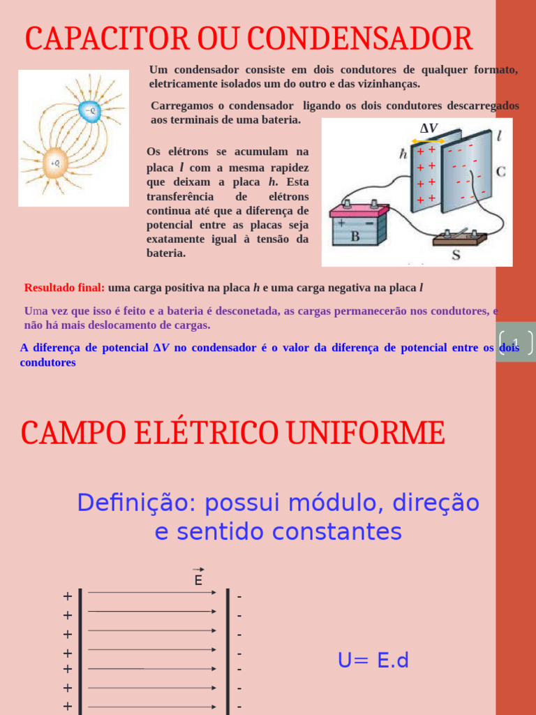 A diferença de potencial ΔV no condensador é o valor da diferença de potencial entre os dois