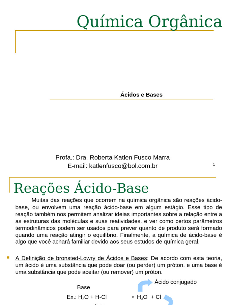 Muitas das reações que ocorrem na química orgânica são reações ácido-