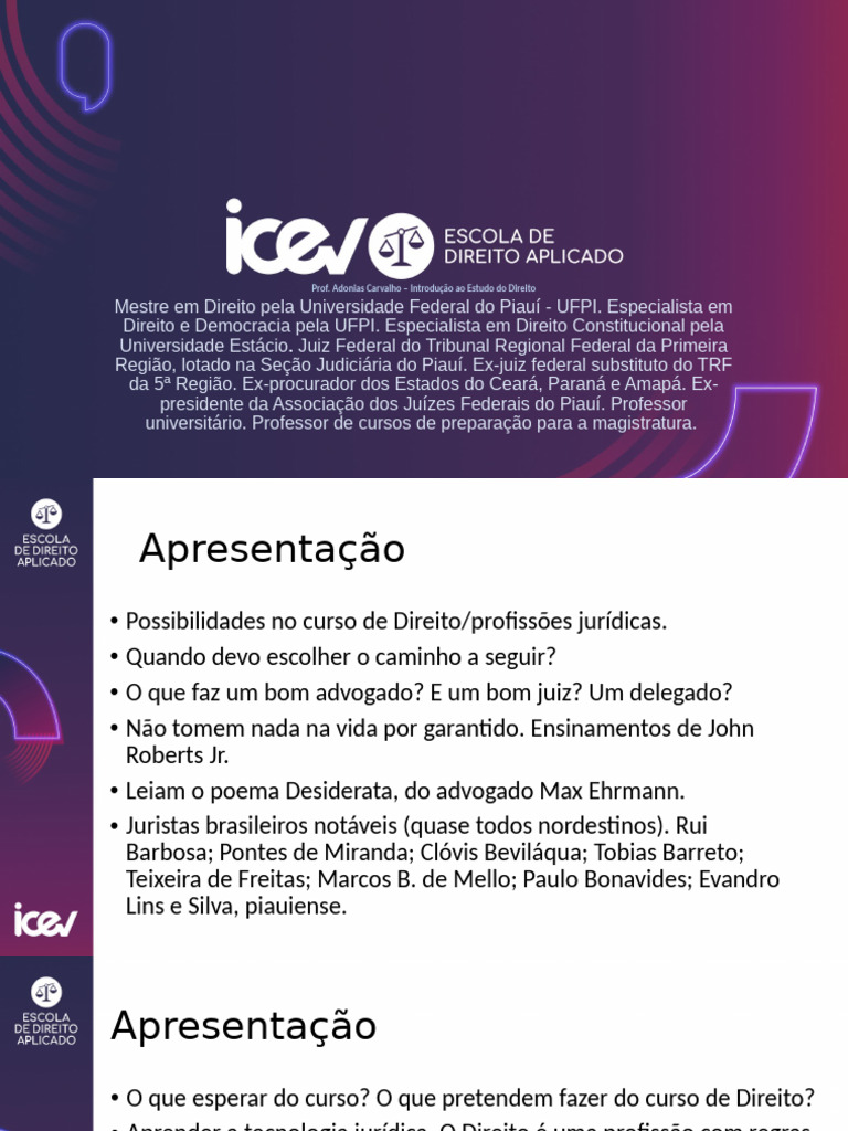 • Possibilidades no curso de Direito/profissões jurídicas.