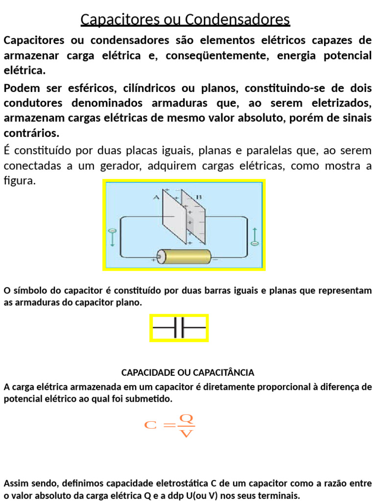 Assim sendo, definimos capacidade eletrostática C de um capacitor como a razão entre