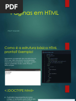 • HTML é uma linguagem utilizada para criar páginas de internet. A