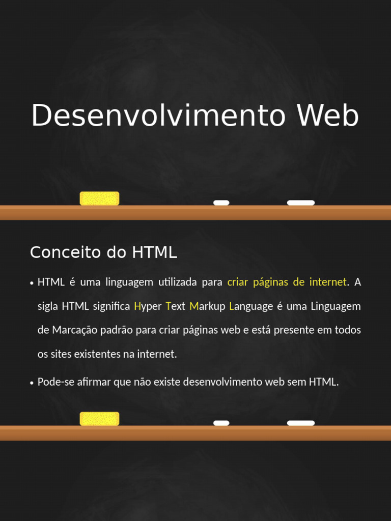 • Pode-se afirmar que não existe desenvolvimento web sem HTML.