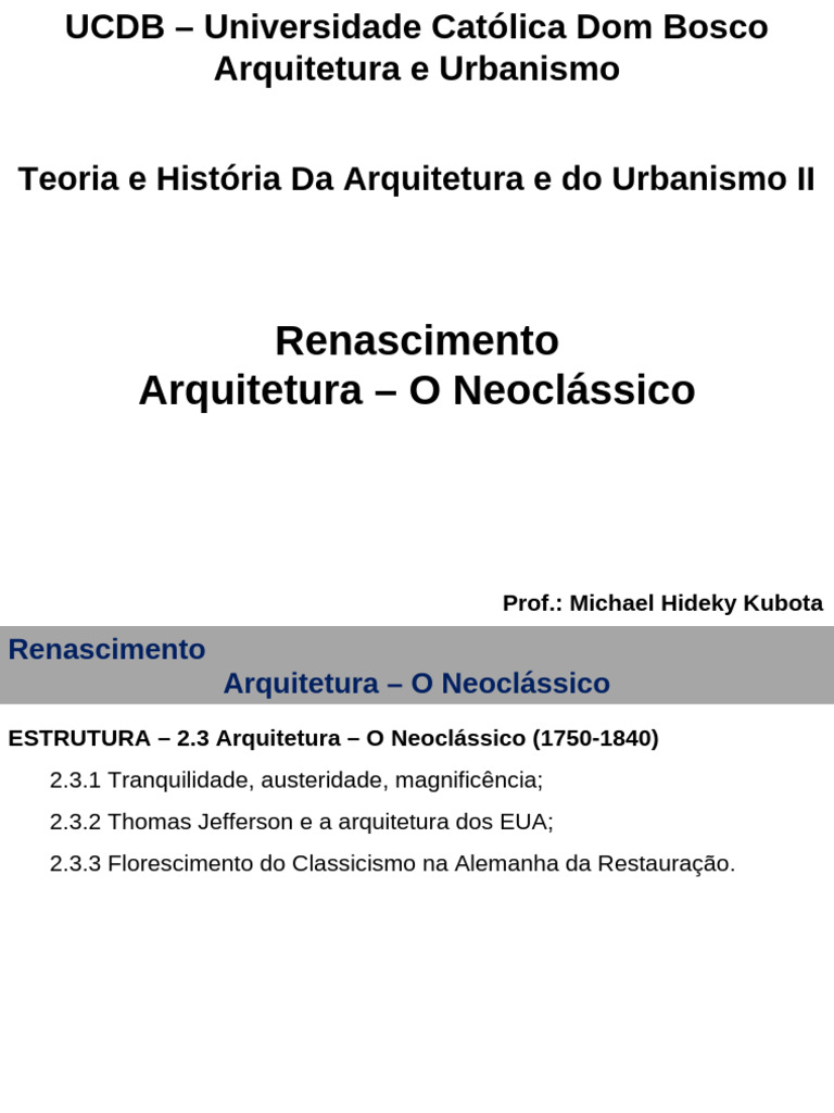 ESTRUTURA – 2.3 Arquitetura – O Neoclássico (1750-1840)