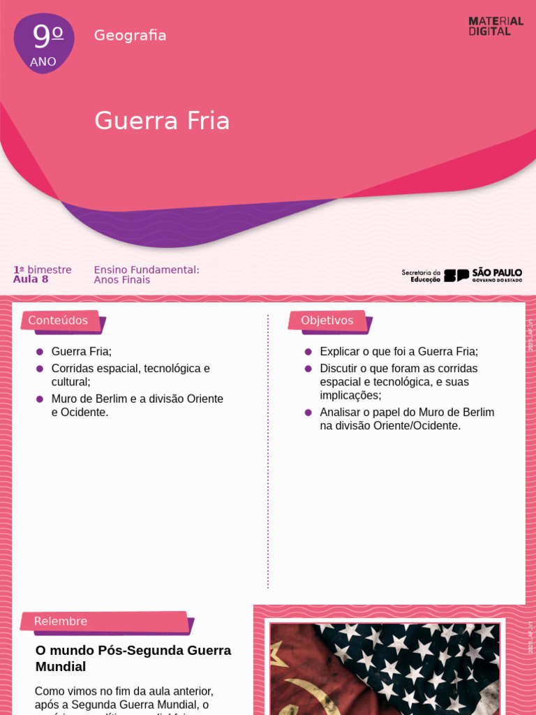 ● Guerra Fria; ● Explicar o que foi a Guerra Fria;