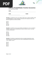Sejam eventos independentes entre si. A probabilidade de ocorrência sucessiva