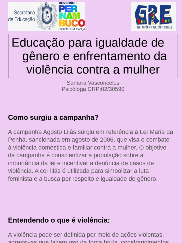 mulheres. Divulgar a importância da lei Maria da Penha e as