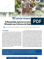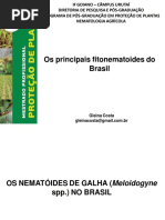 Ocorrncia Atualmente, est presente em cerca de 150 municpios de 10 Estados (MG, MT,MS, GO, SP, PR, RS, BA, TO e MA). Estima-se que a rea com o nematide seja superior a 3,0 milhes de ha. Culturas afetadas Soja. Beterraba, batata, alface, aveia, repolho