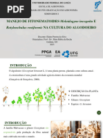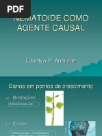 e dificulta a absoro de gua e nutrientes; Porte reduzido das plantas e clorose na parte area; Os sintomas aparecem em reboleiras Sistema radicular reduzido e apresenta minsculas fmeas com formato de limo; quando morre se transforma no cisto