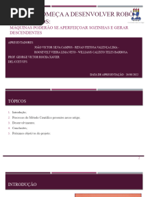 Robôs Evolutivos: Autonomia e AprendizadoPDFRobôs Evolutivos: Autonomia e AprendizadoAdicionado por eletroufs2022.10 notasfunction cn(e,t){var n=e+t;return n<=0?0:Math.round(e/n*100)}% acharam este documento útilSalve Robôs Evolutivos: Autonomia e Aprendizado para mais tarde